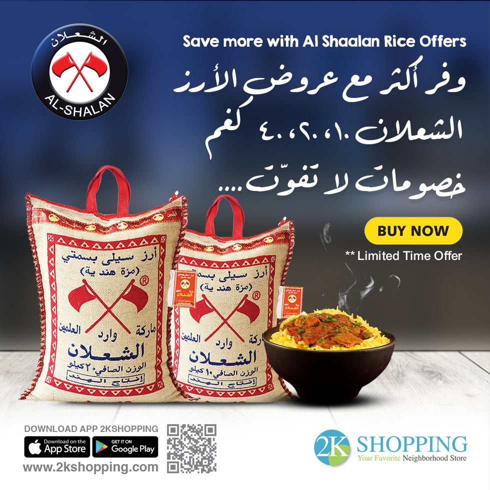 Al Shalan Sella Basmati 1Kg + Shahd Medium Grain 1Kg | أرز بسمتي الشعلان ١كيلو + أرز الشهد اكيلو