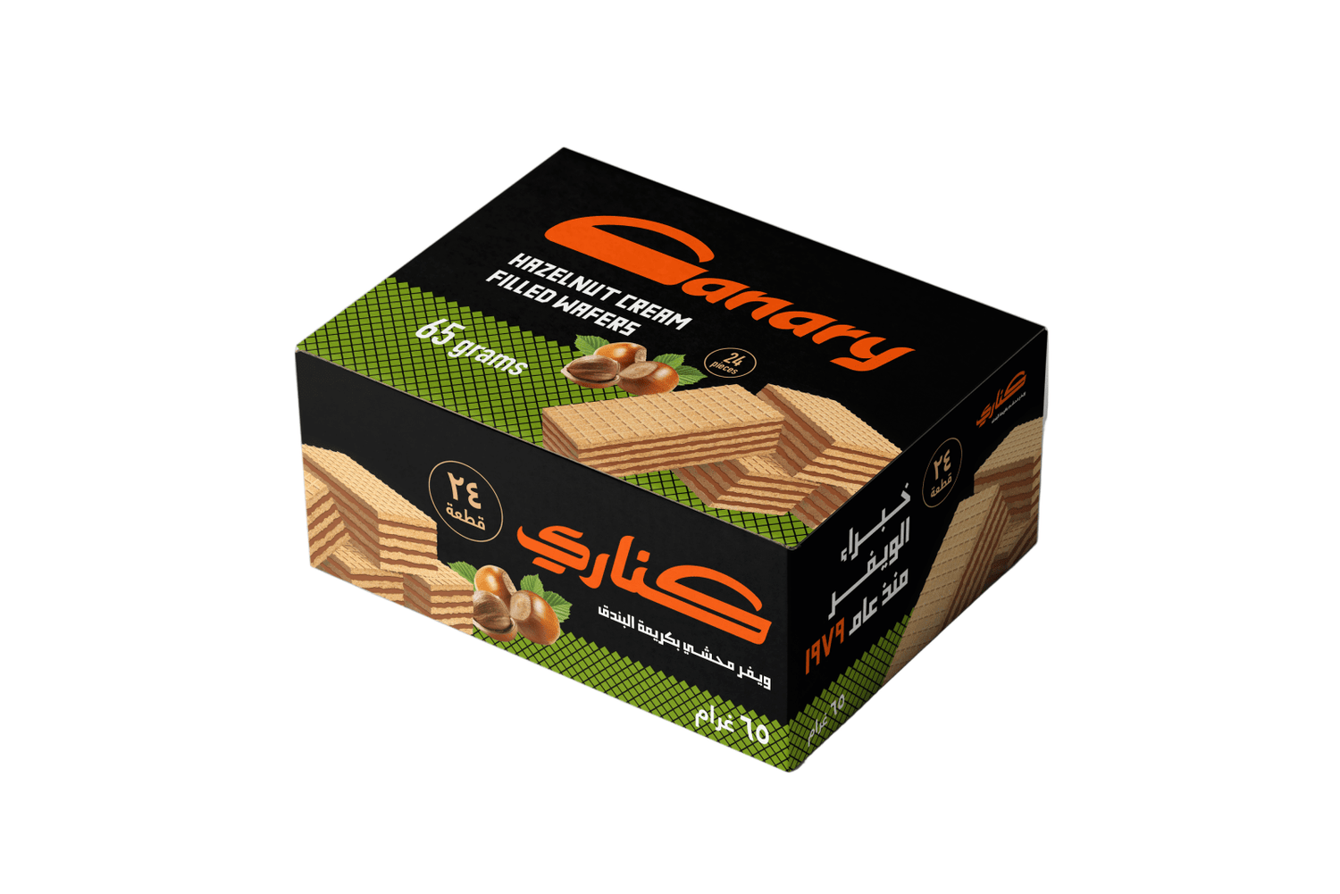 ويفر كناري بكريمة البندق 24 × 65 جم | بسكويت كناري بالبندق