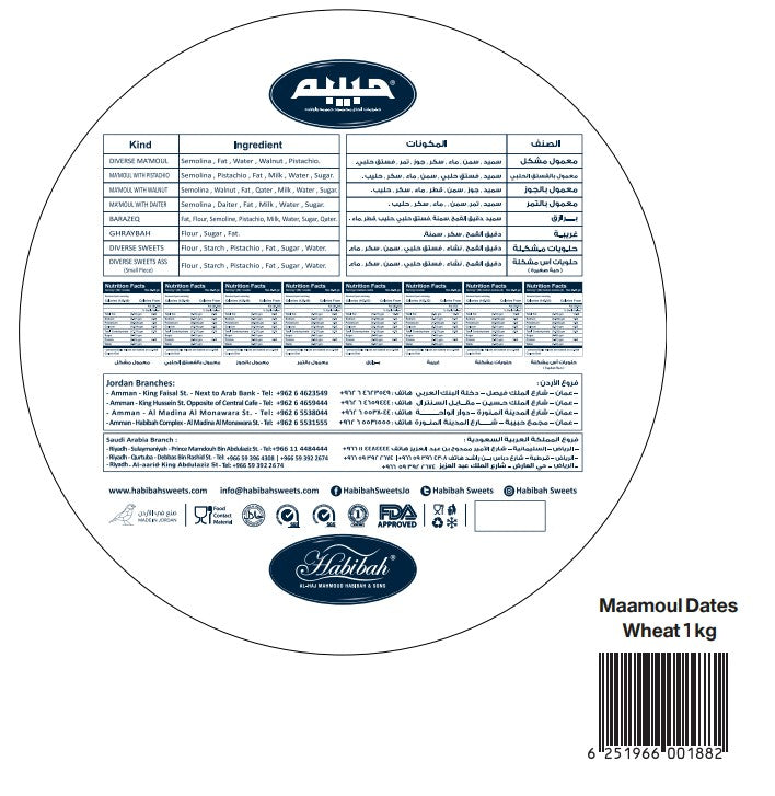 حبيبة معمول مزيج السميد – تمر، فستق، وجوز