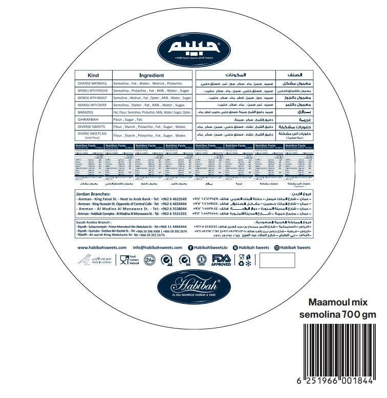 حبيبة معمول خليط السميد 700 جرام | حبيبة معمول سميد مشكلة