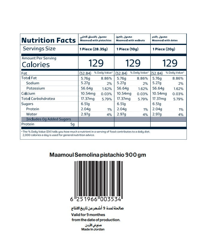 حبيبة معمول مزيج السميد – تمر، فستق، وجوز